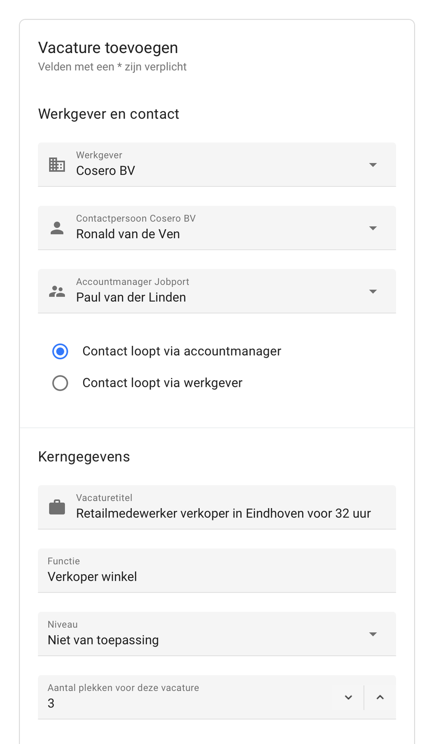 Het vacatureformulier is overzichtelijker geworden door de toevoeging van categorieën: